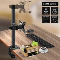 кронштейн для монитора, 15-32", 1 монитор, к столешнице, с регулировкой поворота, с регулировкой высоты, струбцинное крепление, наклон -45-45°, поворот -45-45°, регулировка высоты 60-400 мм, цвет черный
