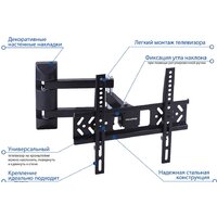 настенный кронштейн для ЖК-телевизора 22-55", наклон 12°, поворот 180°, цвет черный