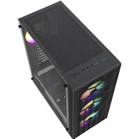 Mid Tower, БП отсутствует, для плат ATX/micro-ATX/mini-ITX, с 4 вентиляторами в комплекте, с контроллером вращения, окно: закаленное стекло, видеокарта до 340 мм, охлаждение ЦП до 160 мм, пылевой фильтр - сверху/снизу, 1xUSB 2.0, 2xUSB-A 3.2 5Гбит/с, цвет черный